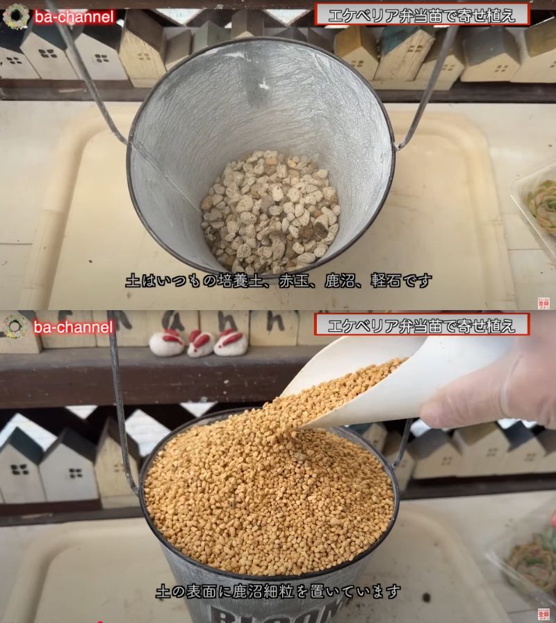 2. 【エケベリアの多肉弁当】ブリキの鉢に、エケベリアをどんどん置いていきます!
