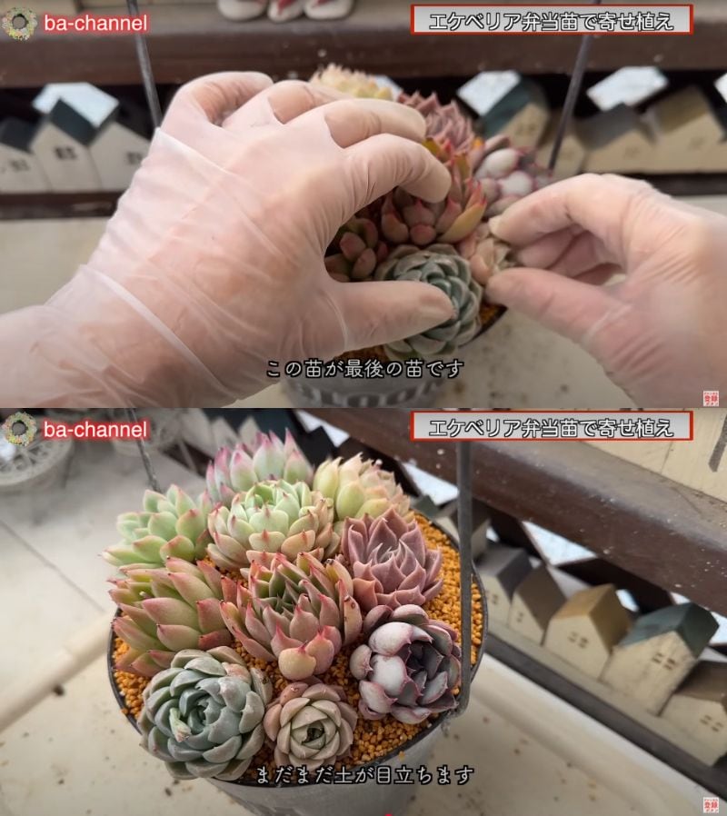3. 【エケベリアの多肉弁当】苗の隙間もしっかり埋めて、おしゃれな寄せ植え鉢の完成!