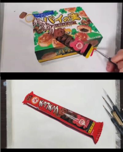 山田さんが好きな「チョコのお菓子」勢ぞろいで贅沢な光景になりました。なかなか揃えようと思っても揃えられない4種類ものお菓子。絵だったら簡単に揃えられるんですね(?)