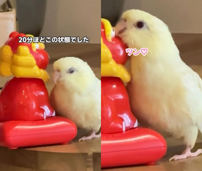 3. 【恋するインコ】20分ほど「恋人」と寄り添って大満足のインコ