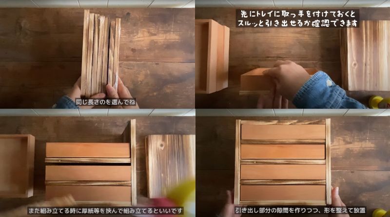 ボンドを使って、カットも無しで引き出しに仕上げていくみわごんちさん。