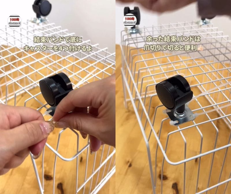2. 【ダイソーの商品でDIY】ワイヤーバスケットにキャスターを取り付けます