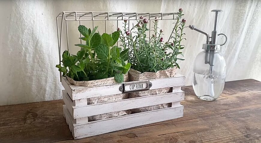 セリアのウッドボックスが、こんなに素敵なガーデニンググッズに仕上がるとは、みわごんちさんのセンスがすごいです。