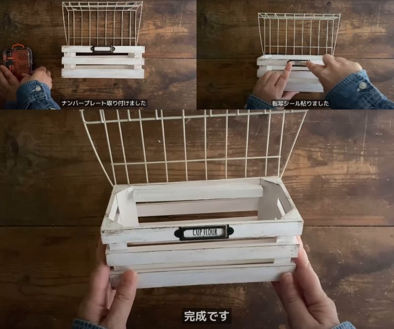 ペンキが乾いたら、ワイヤーシェルフを逆さにしてウッドボックスの上部にビスで取り付け...と思っていたのですが、ここでイレギュラー発生!