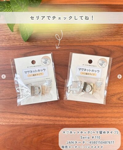 2. 【セリアの商品を使ってDIY】今回使ったマグネットホックはこちら