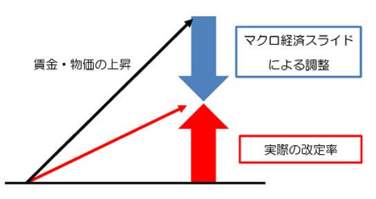 賃金や物価が上昇した場合でも、現役世代の減少や平均寿命の伸びを考慮した「スライド調整率」を差し引いて、年金の給付水準を緩やかに抑えます。