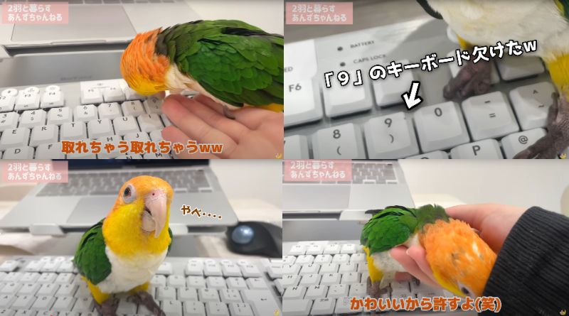2. 【Escキーを剥がすインコ】とろろちゃん、自由奔放にいたずらしまくっております