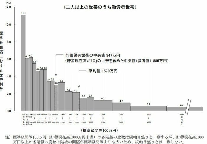 - 貯蓄現在高が「0」の世帯を含めた中央値(参考値):885万円
