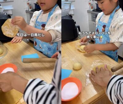 「元サンドイッチ屋」をされていた「ももすけ」( @wahaha_momo21)さんが、お休みの日にお子さんと一緒に「メロンパン作り」をする様子を紹介した動画がInstagramで注目を集めています。投稿したのは、ももすけさんご本人。
