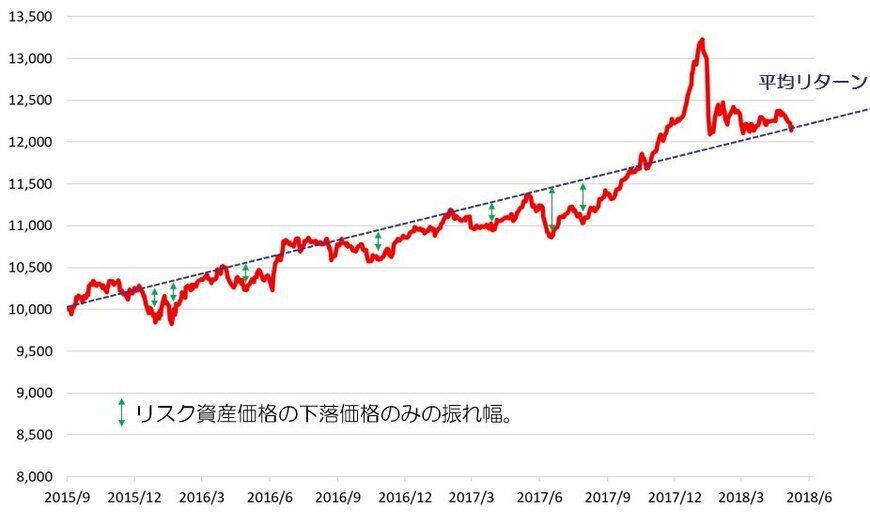 ということは、上記の例ではリスク資産の全体の値動きの大きさは分かりますが、損失が発生したときにどのくらいの値動きをするのかということも、投資家としては知っておかねばなりません。