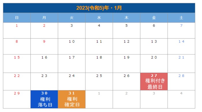 ※権利付き最終日:株主がその株式を保有することで株主優待などの株主権利を受けることができる最終売買日