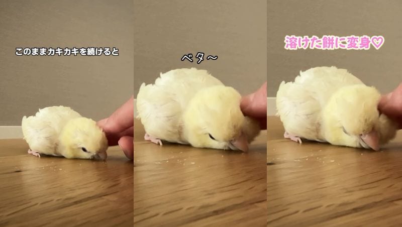 【気持ちよすぎて寝るインコ】カキカキからそのまま...ZZZうっかり眠ってしまったインコが話題 「溶けた餅に変身」美味しそう~ 2025.06.14 07:05 公開 執筆者長島 迪子 copy URL 目次[開く] 1. 【気持ちよすぎてウトウトインコ】カキカキをおねだりするインコがかわいい 2. 【気持ちよすぎてウトウトインコ】カキカキからのベタ~。そして... 3. 【気持ちよすぎてウトウトインコ】ついに陥落!寝てしまいました 4. 【鳥に関する診療費】鳥の年齢0歳と5歳では、年間診療費に約3倍近くの差 4.1 2024年鳥の年齢別の年間診療費(平均値) 参考資料 2. 【気持ちよすぎてウトウトインコ】カキカキからのベタ~。そして... 出所:@daiinkoteikoku_soraoto しばらくカキカキをしていると、ベタ~っと平べったくなってしまったぽてちゃん。 ついに「溶けた餅」に変身です。 美味しそうなので、このまま食べてしまいたい...。 3. 【気持ちよすぎてウトウトインコ】ついに陥落!寝てしまいました < 1 2 3 4 > 関連タグ #Instagram #インコ #小鳥 #SNS 注目コンテンツ 30秒でオススメの医療保険の特約がわかる!保障で悩むならまずは診断[PR] 年齢入れて5秒で見積もり!人気の医療保険ランキングをチェック[PR] 女性特有のがんは40代から増える?女性向け医療保険で備える[PR]
