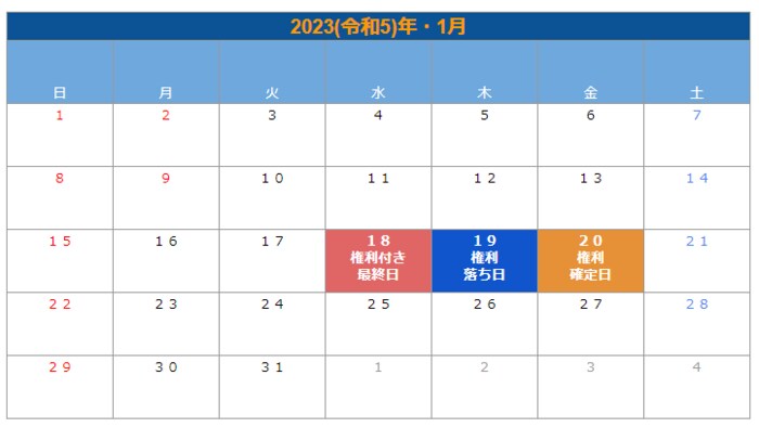 ※権利付き最終日:株主がその株式を保有することで株主優待などの株主権利を受けることができる最終売買日