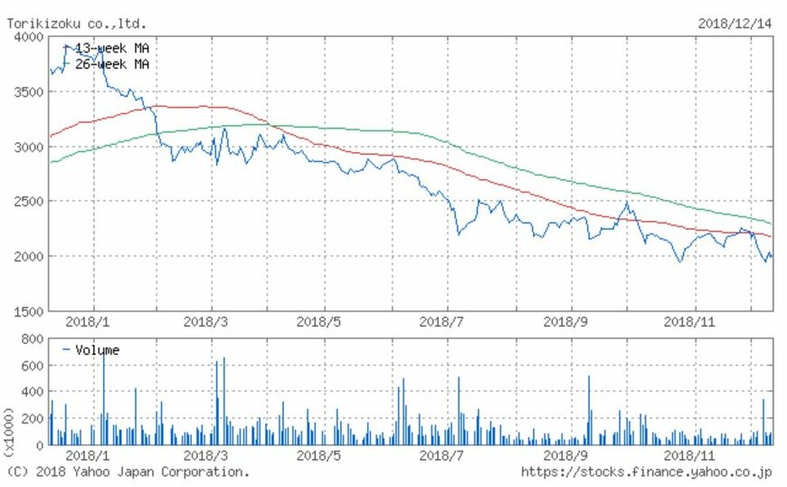 シリーズでお伝えしている「注目小売店月次実績」。今回は焼鳥チェーン店「鳥貴族」を運営する鳥貴族(3193)の、2018年11月の月次動向及び過去実績、また過去1年の株価動向について振り返ってみましょう。