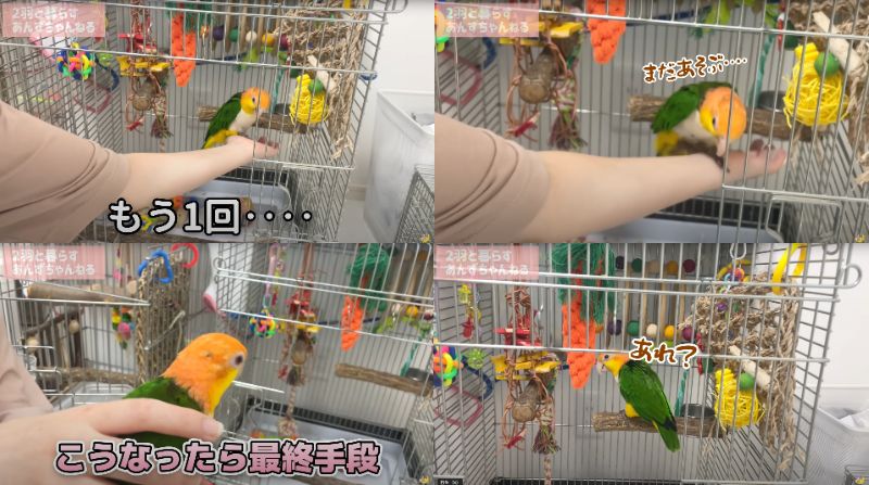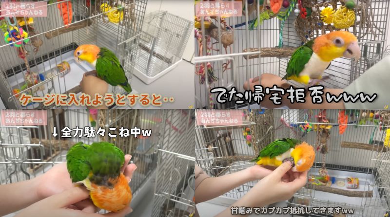 2. 【寝たくないインコ】2羽とも帰宅拒否!1羽ずつお部屋に入ってもらいます