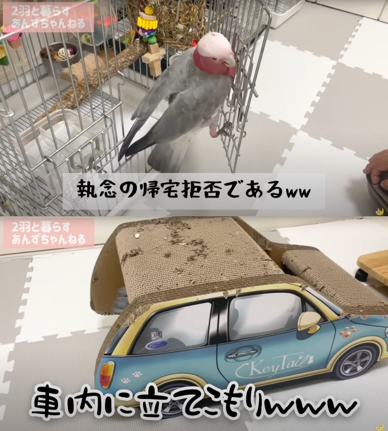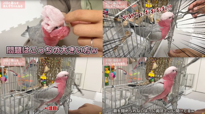 3. 【寝たくないインコ】もう1羽が大変!まさかの120度開脚で執念の帰宅拒否!
