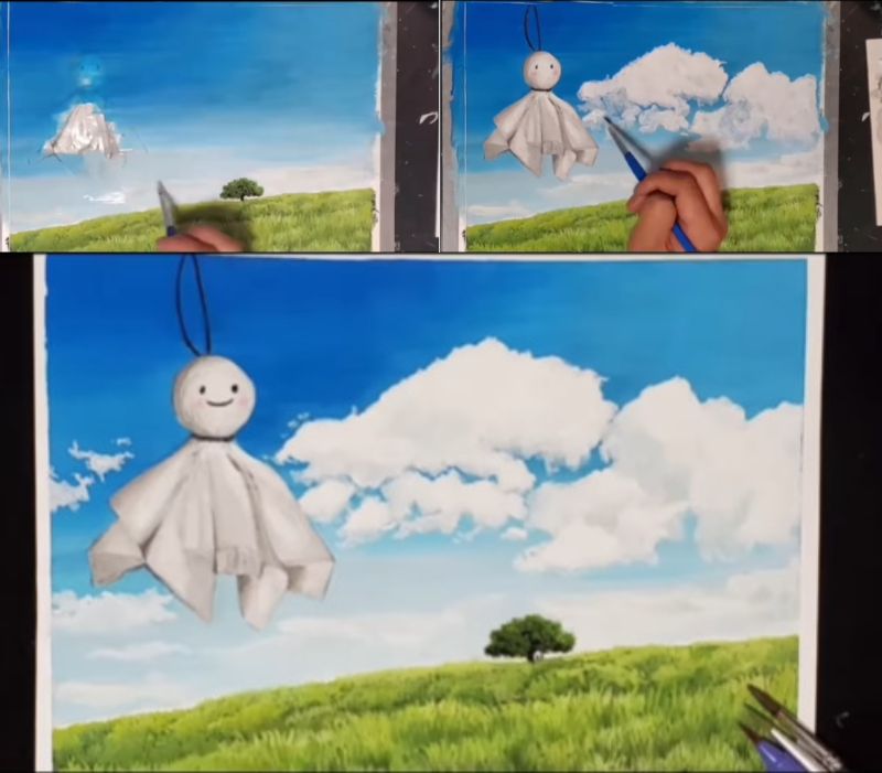 2. 【くるくる変わるお天気】あ、雲が晴れてきました!てるてる坊主も思わずにっこり