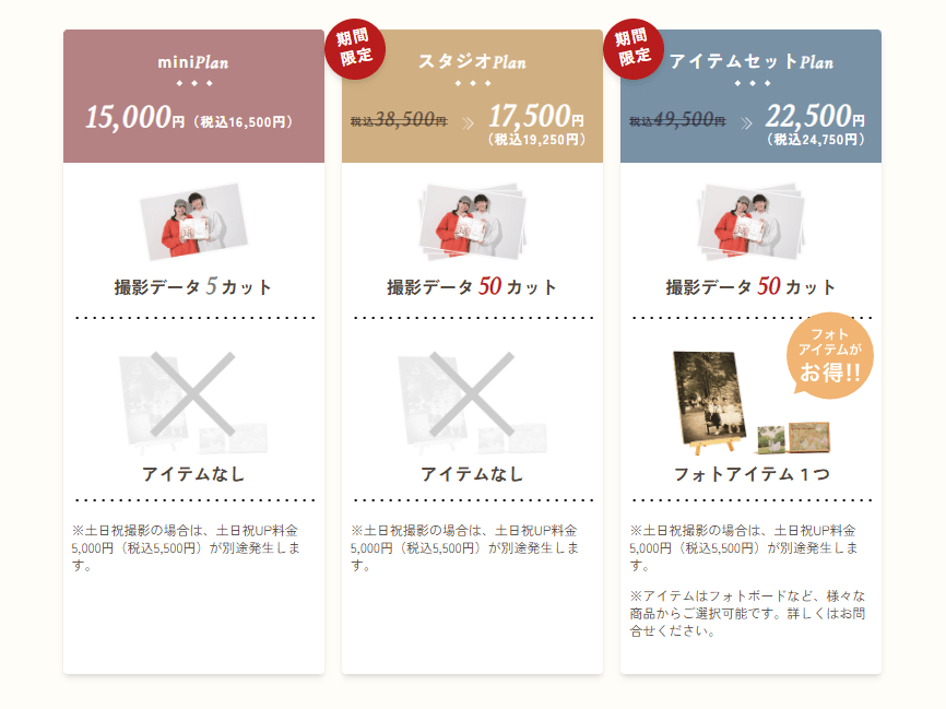 アイテムセットPlan/撮影データ50カット+フォトアイテム1つ:4万9500円→2万4750円
