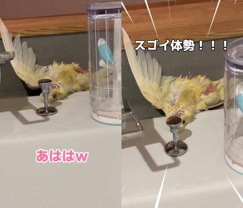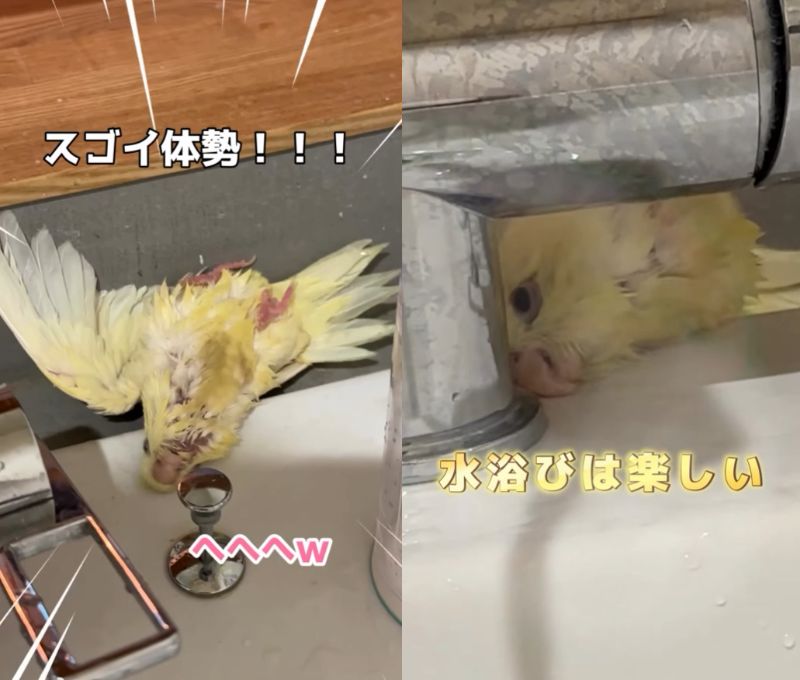 など、可愛いインコの「エアー水浴び」の様子に癒された人もたくさんいたようです。