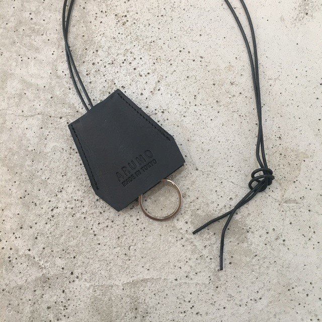 シンプルになりすぎる冬コーデのアクセントに、レザーのキーホルダーネックレスを。首からぶら下げて、ニットやスウェットと合わせるのがおすすめの使い方です。
