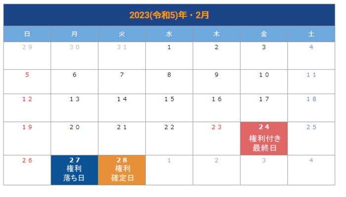 ※権利付き最終日:株主がその株式を保有することで株主優待などの株主権利を受けることができる最終売買日
