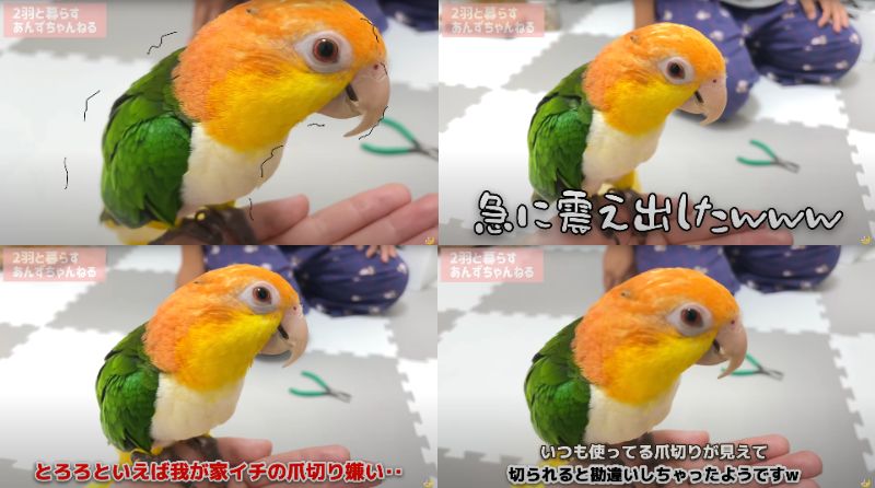 3. 【インコの目】爪切りへの恐怖のあまり震えだすインコ...過去に何かあったのでしょうか