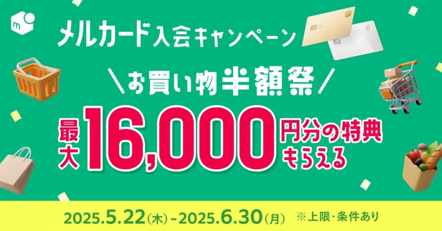 現在、「メルカード ゴールド」では、これから入会する方にとって非常にお得なキャンペーンを実施中です。いくつかの簡単な条件を達成することで、最大で1万6000円分の特典(ポイントやクーポン)を受け取ることができます。