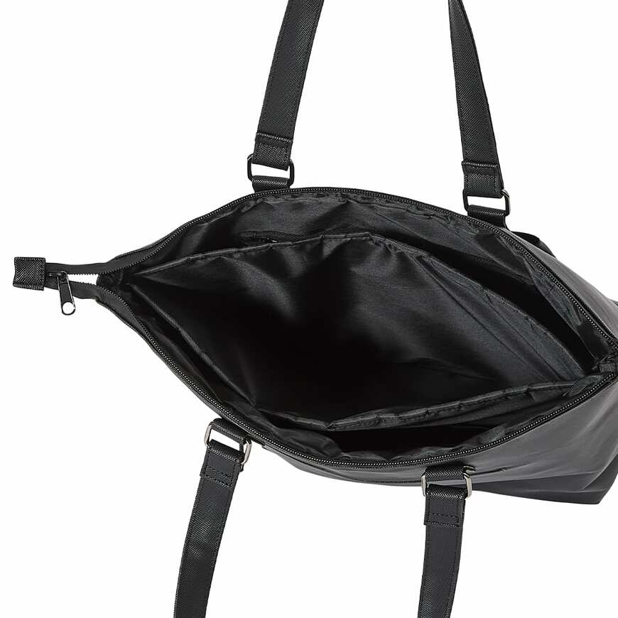 ワークマン「型くずれしにくいビジネストート」の内部は、3層構造になっており、荷物の仕分けがしやすいのが大きな特長。スマホや財布などの小物類はもちろん、ペットボトルが立てられるポケットや、クッション付きのPCポケット、中身の見えるファスナーポケットも完備。必要なものがすぐに見つかり、出し入れのストレスが減るのが嬉しいポイントです。