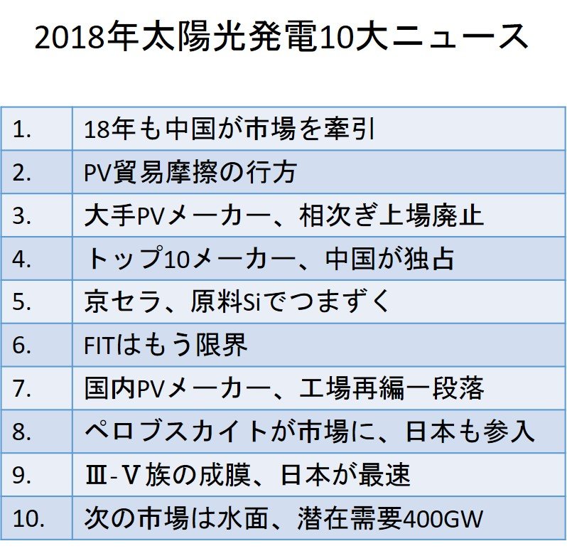 今回、18年のPV10大ニュースを選出し、市場および技術開発の現況を振り返るとともに、19年の動向を展望する。