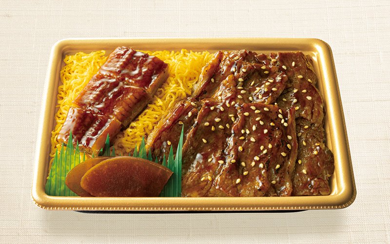 うなぎだけでは物足りない人には牛焼肉も楽しめる「うなぎ蒲焼と牛焼肉重」(税込1680円)。牛焼肉はコチジャンやりんご果汁による甘辛な味付けとなっています。