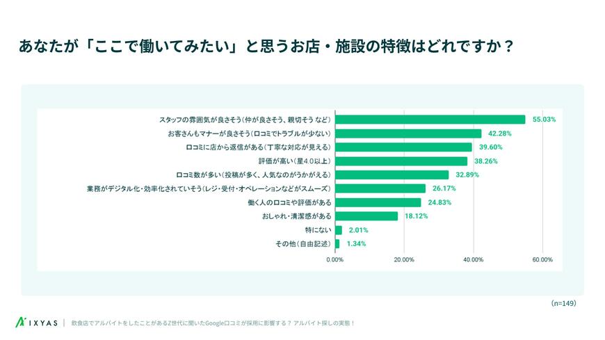 出所:調査レポート公開「飲食店でアルバイトをしたことがあるZ世代に聞いた!Google口コミが採用に影響する? アルバイト探しの実態」|イクシアス株式会社