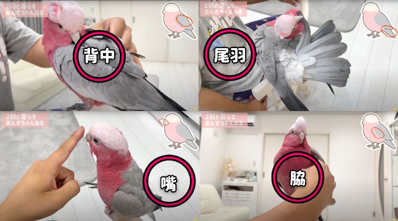2. 【インコのお触りマップ】まずはパパ。余裕の全箇所クリアです!