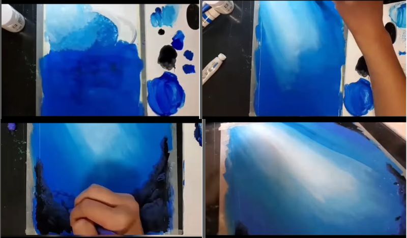 深い青色の絵の具で、今度はいったい何を描いているのでしょうか?