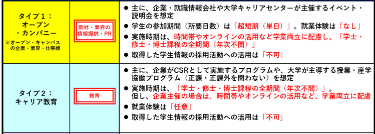 これらは正式には「インターンシップ」ではなく、会社や業界の情報を知ったり、簡単な仕事体験をしたりするのが主な目的です 。