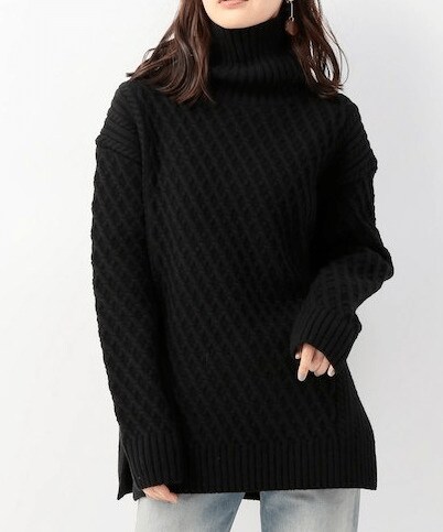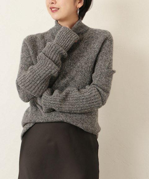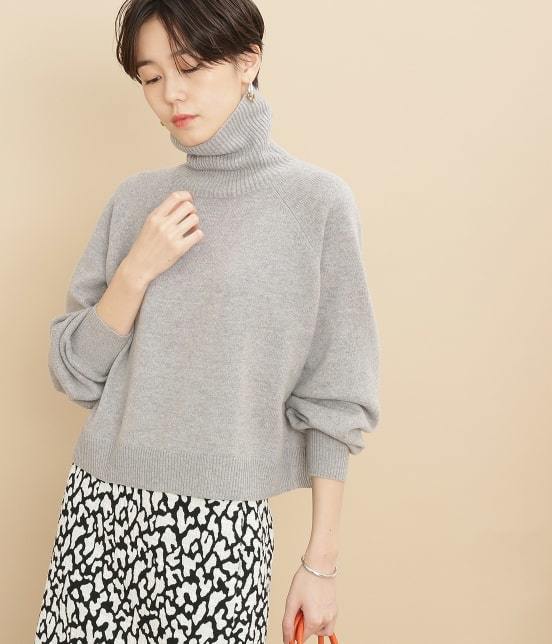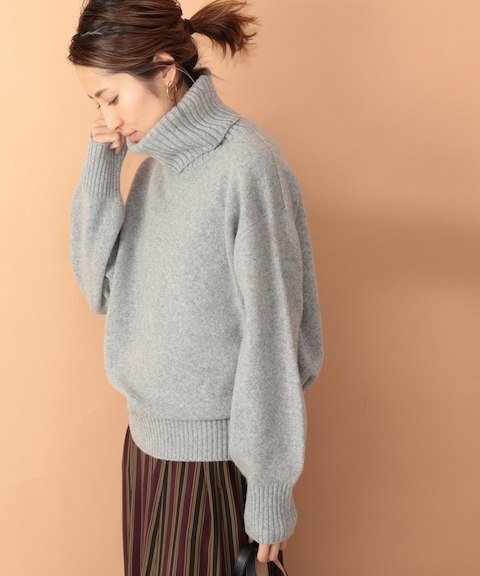 カシミヤ混の上質な素材感とホールガーメント仕立てが特徴のタートルプルオーバー。ゆったりとしたサイズ感の今年っぽい一着は、袖までふくらみを持たせています。