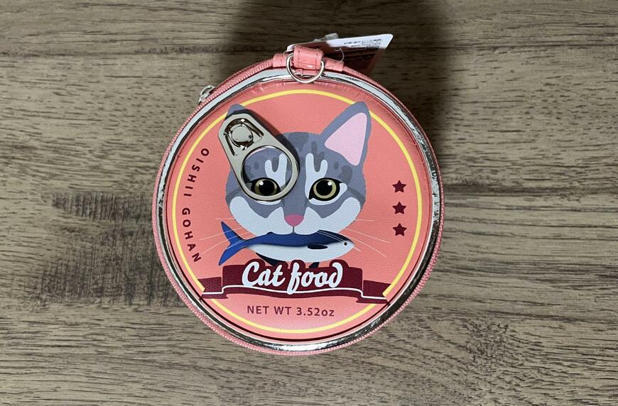 1. 猫たちの美味しいご飯デザインです! ダイソーで買える「猫缶デザインのポーチ」