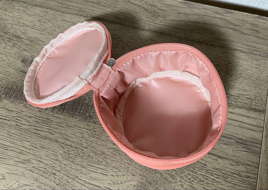 小物やコスメを収納するのに便利なサイズです。内側は裏地付きでした。透けないポーチなので、外側から見られたくないアイテムも収納できます。