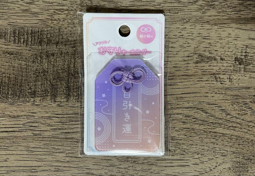 こちらがキャンドゥで人気を集めている「推し活用のお守り」です。アクリル製の可愛らしいデザインのお守りです。