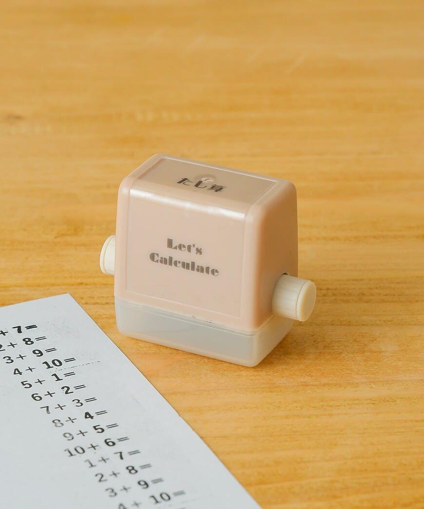 こちらが3COINSに登場した「計算ローラースタンプ」です。ころころと回すだけで、算数の問題プリントを作成することができます。