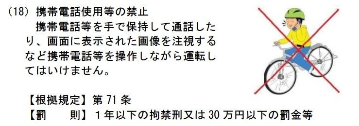 令和6年11月から「ながらスマホ」の自転車運転が法律で禁止され、罰則も強化されました。スマホを手に持つだけでなく、取り付けた画面を注視するのも違反になります。違反して事故を起こすと、最大で1年以下の拘禁刑や30万円以下の罰金の可能性も。これにより、自転車でも安全運転が一層求められています。