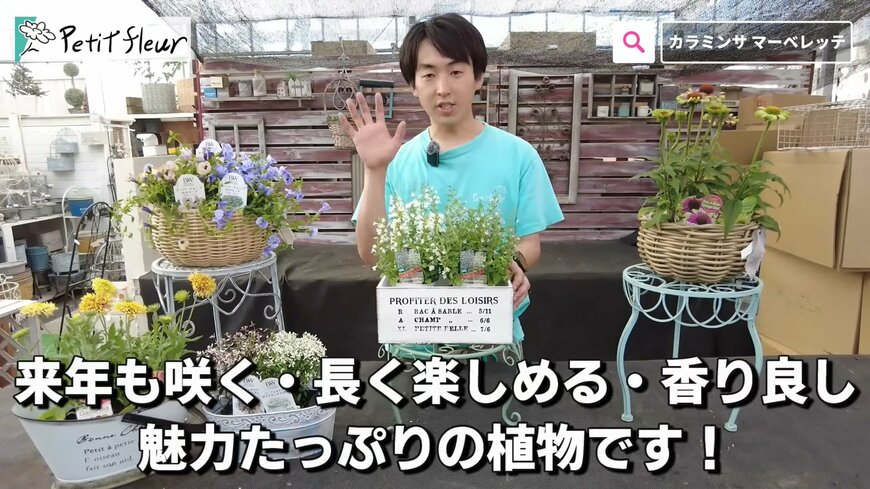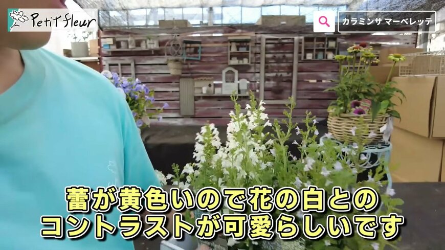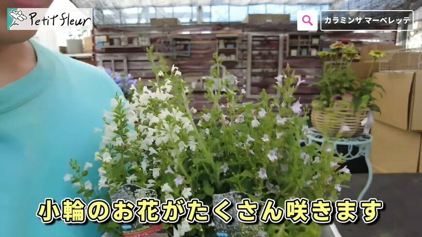 次に紹介されたのは、春から晩秋にかけて株いっぱいに爽やかな小花をたくさん咲かせる「カラミンサ・マーベレッテ」。花色は白と薄紫があるそうです。