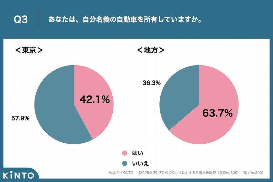 3.1 地方の63.7%が「自分名義の自動車」を所有、都内より21.6ポイント高い結果