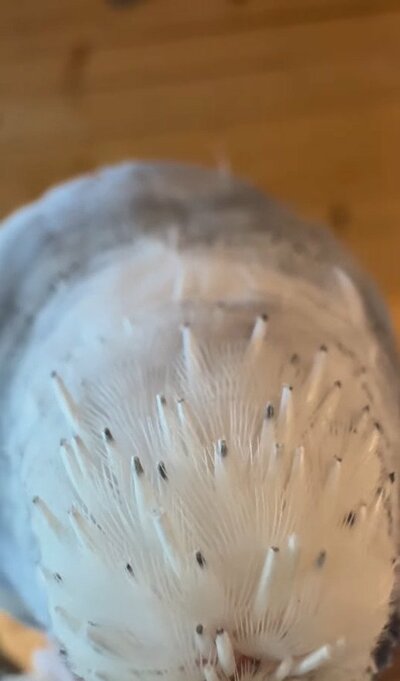 なお「筆毛」とは、インコの羽が抜けたとき、トゲのようなツクツクした状態で生えてくる新しい羽のことです。