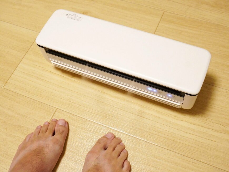 また、足元に置くというのも、おすすめしたい使い方です。筆者の狭い書斎だと机の上に置くのは少し風力が強すぎるかなと思ったのですが(3段階で調整可能ですが、弱でも結構な風量があります)、足元であれば素足に直接ミストがかかって非常に快適でした!