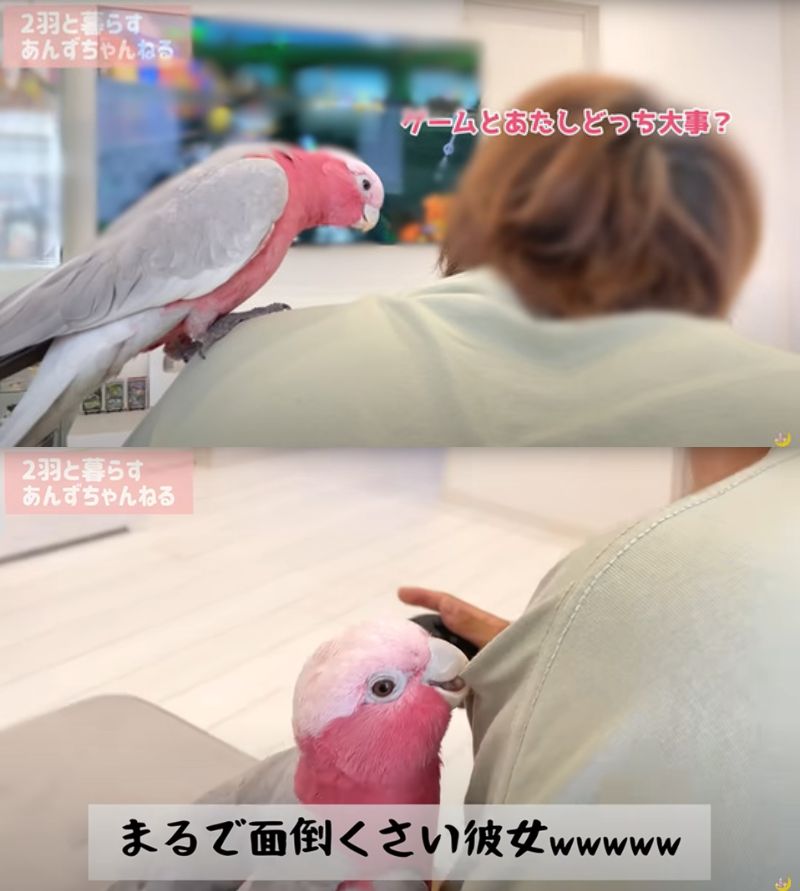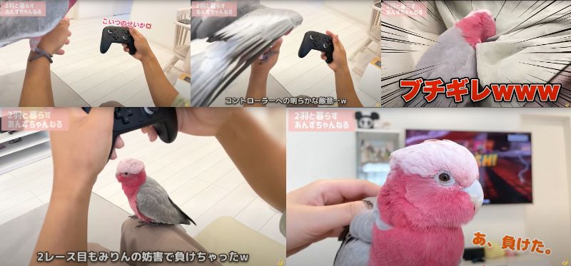 2. 【Switch2に嫉妬するインコ】邪魔をしまくってパパのレースを妨害することに成功(笑)