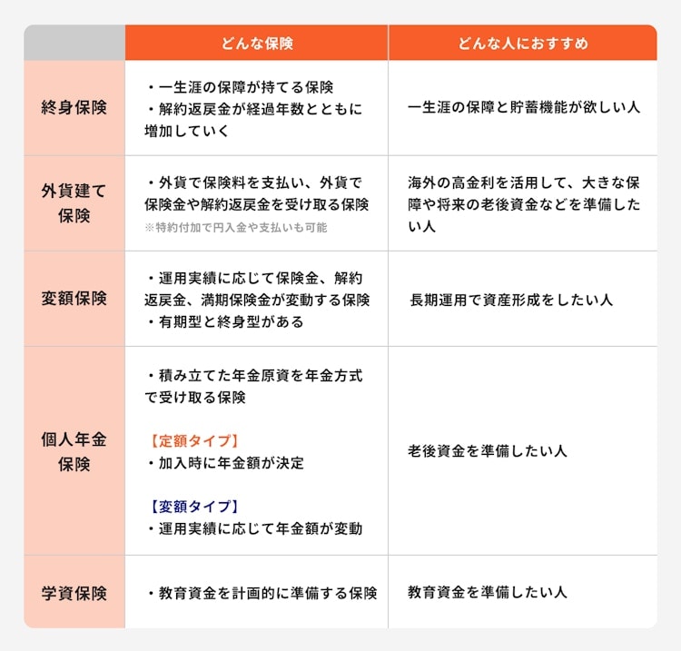 3. 主な貯蓄型保険の種類