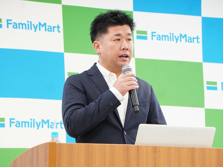 8月3日に開催された発表会では、商品本部・商品企画部の阿部大地氏が、直近のファミリーマートの取り組みや企画の今年の40%増量作戦の特徴を説明しました。