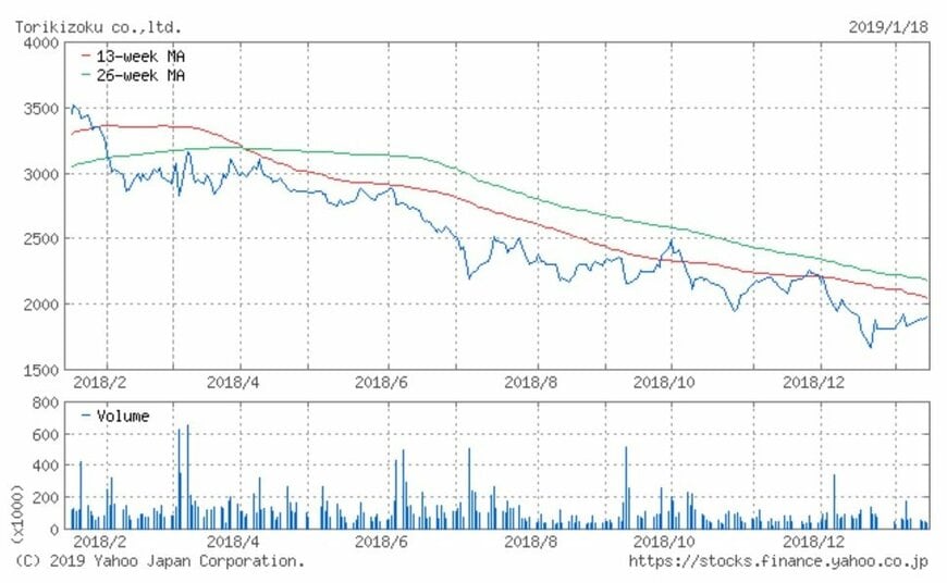 シリーズでお伝えしている「注目小売店月次実績」。今回は焼鳥チェーン店「鳥貴族」を運営する鳥貴族(3193)の、2018年12月の月次動向及び過去実績、また過去1年の株価動向について振り返ってみましょう。