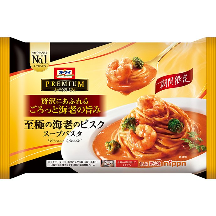 新商品となる「至極の海老のビスク スープパスタ」の最大の特徴は、オーマイプレミアムとして最大サイズの海老を使用していることです。調理方法にもこだわり、バターオイルで和えて旨味を閉じ込めることでプリっとした食感に仕上げました。