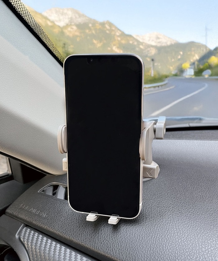 最後にご紹介するのは、ダッシュボードの上にスマホを設置する、最もスタンダードなタイプに近い「CARスマホホルダー上向き」です。